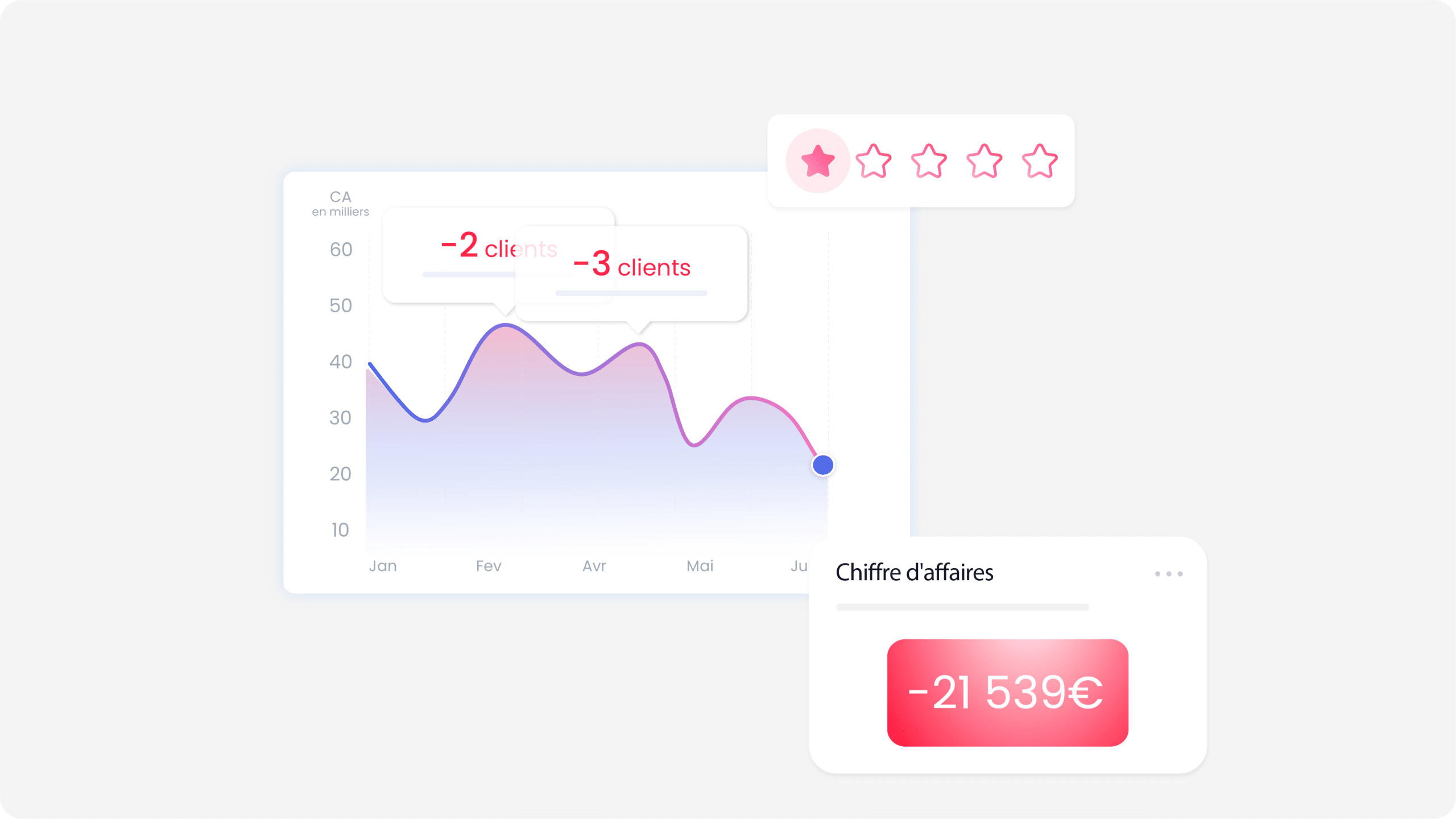 ✔️ Chiffre d’affaires à risque – Visualisez le manque à gagner potentiel lié à vos clients mécontents